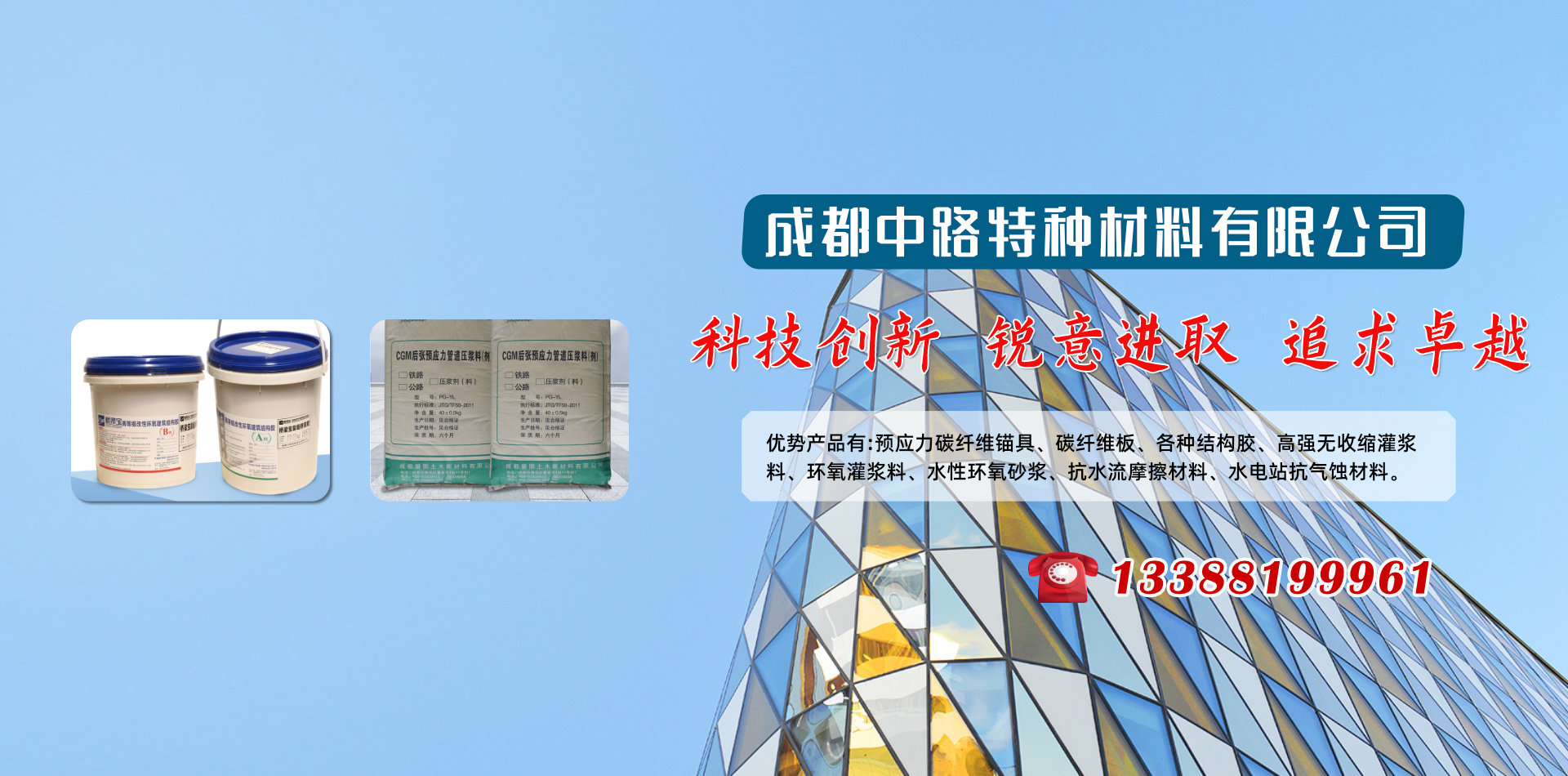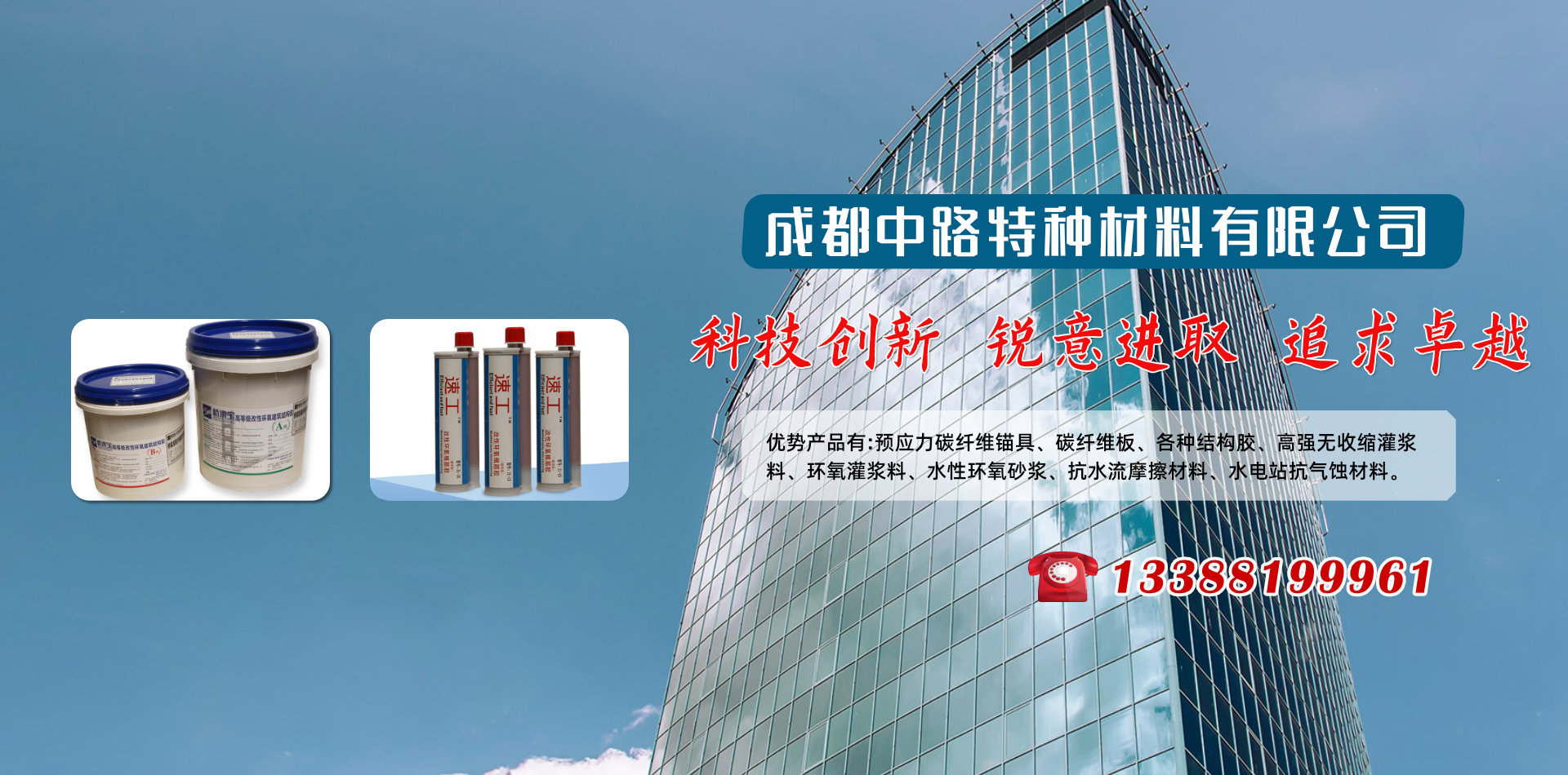 成都中路特種材料有限公司借助清華大學(xué)高分子材料學(xué)科、晨光化工研究院、西南交通大學(xué)、四川交通職業(yè)技術(shù)學(xué)院科研技術(shù)平臺(tái)成為一家集新材料研發(fā)、銷(xiāo)售、技術(shù)服務(wù)和施工于一體的專(zhuān)業(yè)服務(wù)公司,優(yōu)勢(shì)產(chǎn)品有:預(yù)應(yīng)力碳纖維錨具、碳纖維板、各種結(jié)構(gòu)膠、高強(qiáng)無(wú)收縮灌漿料、環(huán)氧灌漿料、水性環(huán)氧砂漿、抗水流摩擦材料、水電站抗氣蝕材料和研發(fā)各種特殊用途膠黏劑產(chǎn)品地處西南腹地成都,業(yè)務(wù)覆蓋四川各大中小城市、重慶、云南、昆明、新疆、西藏等區(qū)域。產(chǎn)品涵蓋各種加固施工材料、施工設(shè)備及施工配件,品牌有威士邦等aa進(jìn)口品牌,同時(shí)批發(fā)銷(xiāo)售國(guó)產(chǎn)高、中、低端品牌,為客戶(hù)提供全面參考。